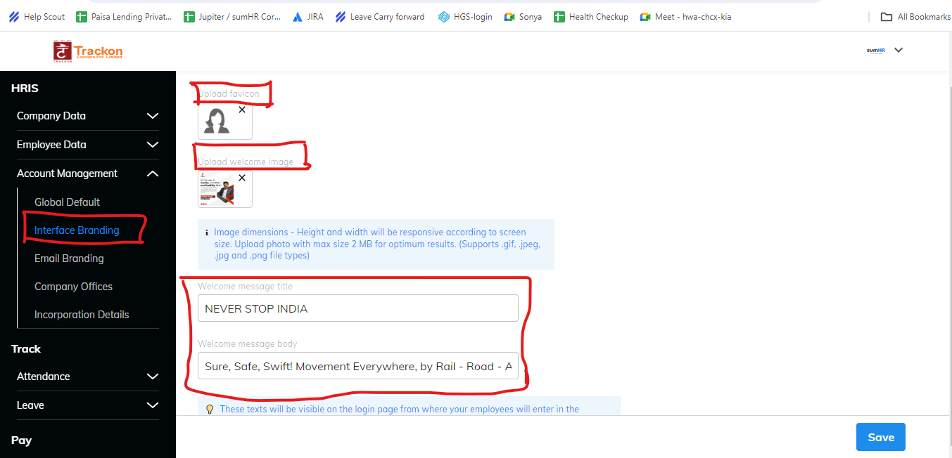 - From here you can Upload FAVICON, WELCOME image and update WELCOME MESSAGE.
